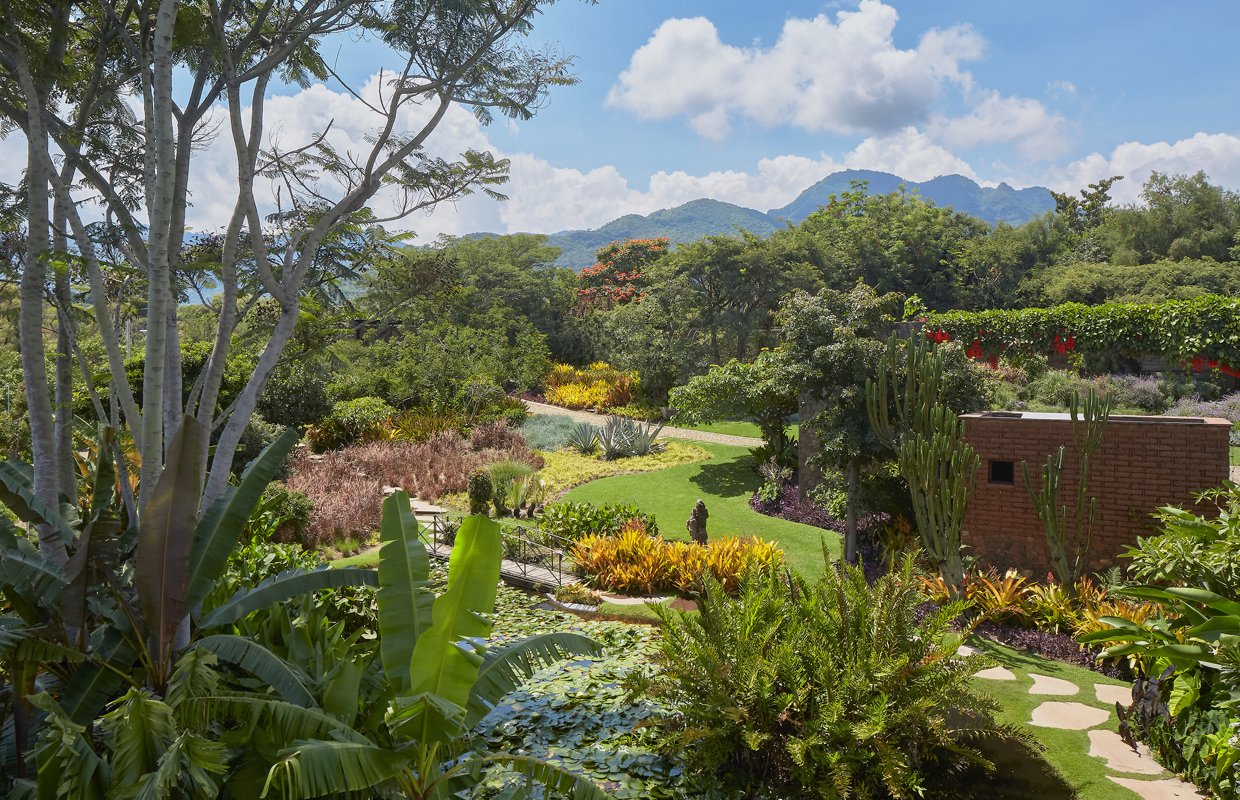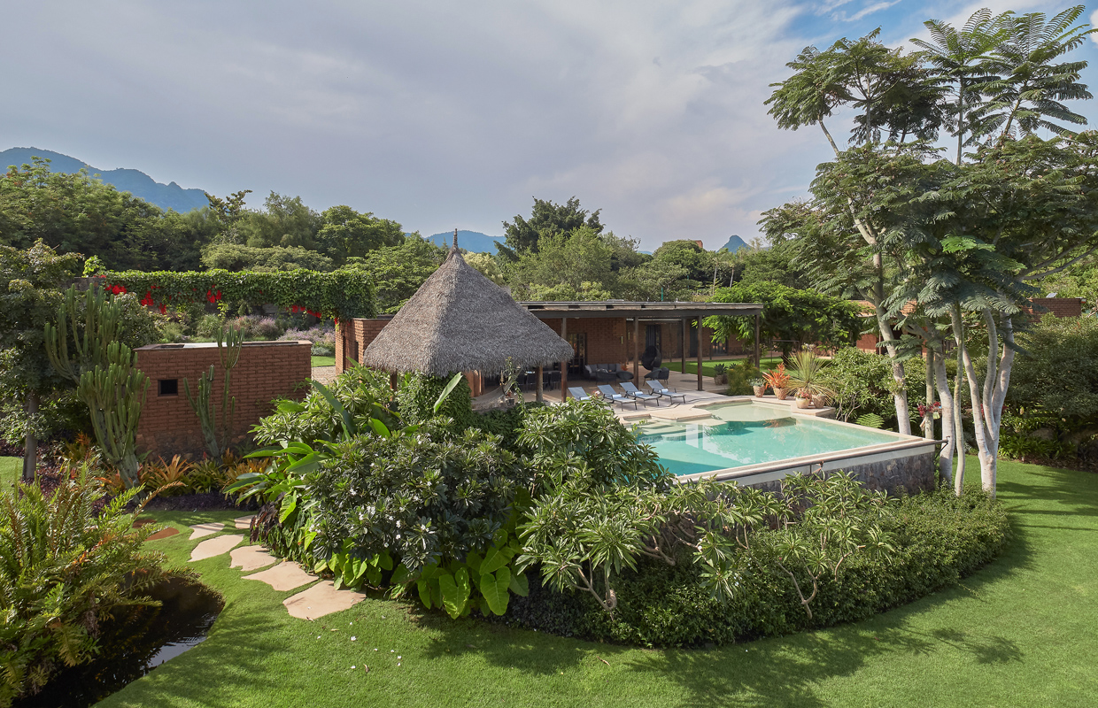 Casa Las Ninfas es un refugio de serenidad donde cada rincón del paisaje fue diseñado para invitar a la contemplación y al disfrute de la naturaleza. Desde la entrada, un camino empedrado para autos se acompaña de senderos a distintos niveles que conducen al visitante a comenzar el recorrido por el jardín.